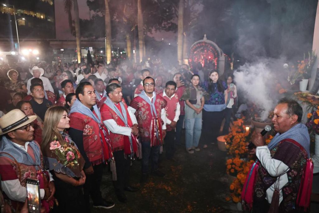 Destacó que el altar, adornado con juncia, flores, alimentos y bebidas para los difuntos, representa un símbolo vivo de la identidad y espiritualidad de las y los chiapanecos, reafirmando la importancia de transmitir estas costumbres a las nuevas generaciones. “Cada flor, cada vela y cada ofrenda colocada en este altar nos recuerda la grandeza de nuestras tradiciones y el respeto hacia quienes nos antecedieron”, expresó.