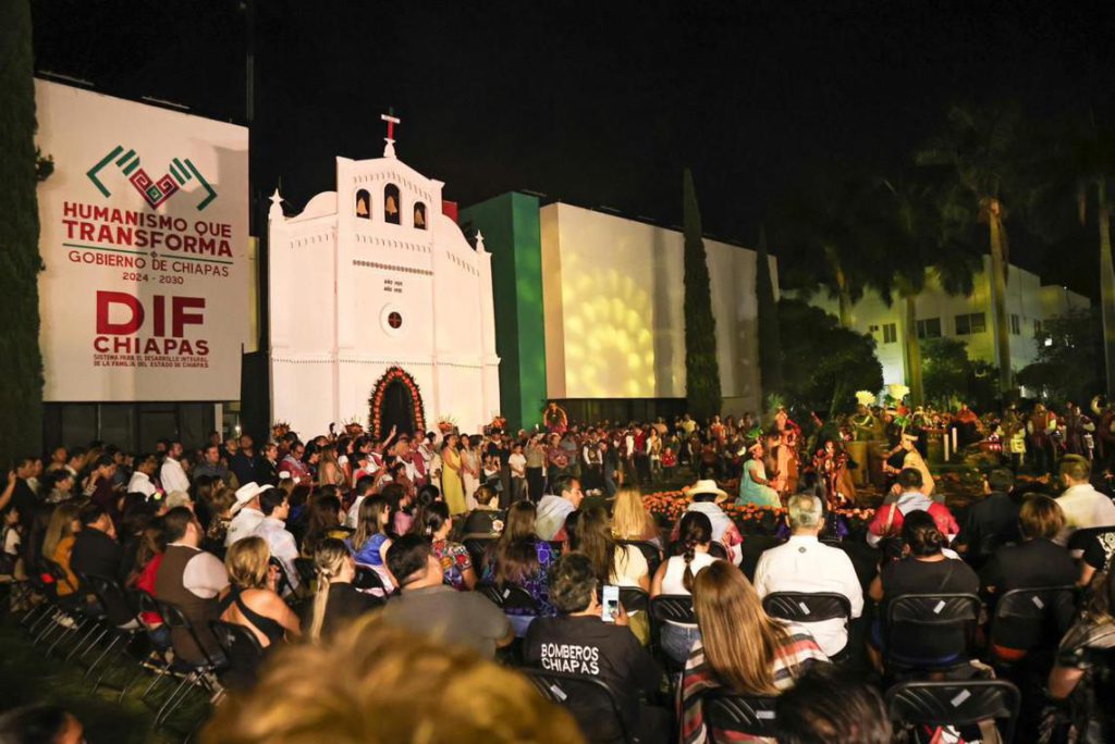 Rodeados por los colores de los tejidos tradicionales, el aroma del cempasúchil, el copal, y la atmósfera de respeto y alegría que acompaña a los rituales del Día de Muertos, el gobernador Eduardo Ramírez Aguilar y la señora Sofía Espinoza Abarca inauguraron el Ska’k’alil animaetik, una representación de la celebración tradicional de Zinacantán, en las instalaciones del Sistema DIF Chiapas, en Tuxtla Gutiérrez.