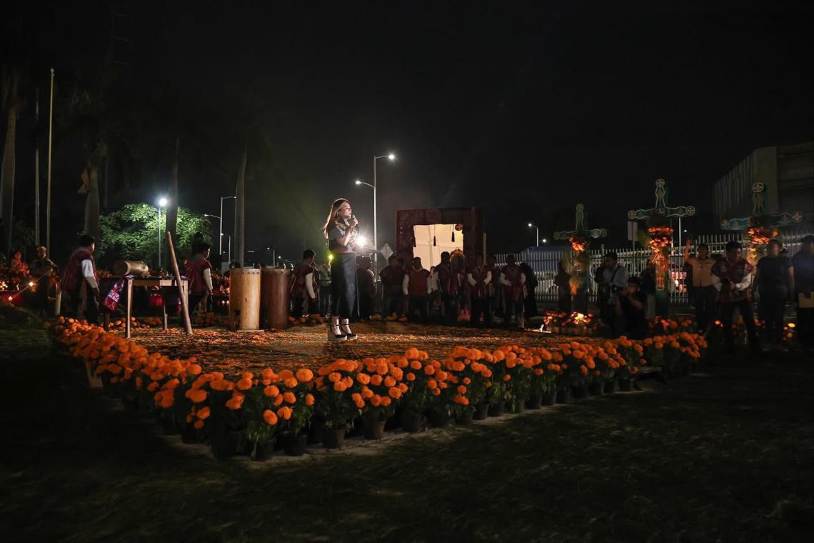 Destacó que el altar, adornado con juncia, flores, alimentos y bebidas para los difuntos, representa un símbolo vivo de la identidad y espiritualidad de las y los chiapanecos, reafirmando la importancia de transmitir estas costumbres a las nuevas generaciones. “Cada flor, cada vela y cada ofrenda colocada en este altar nos recuerda la grandeza de nuestras tradiciones y el respeto hacia quienes nos antecedieron”, expresó.