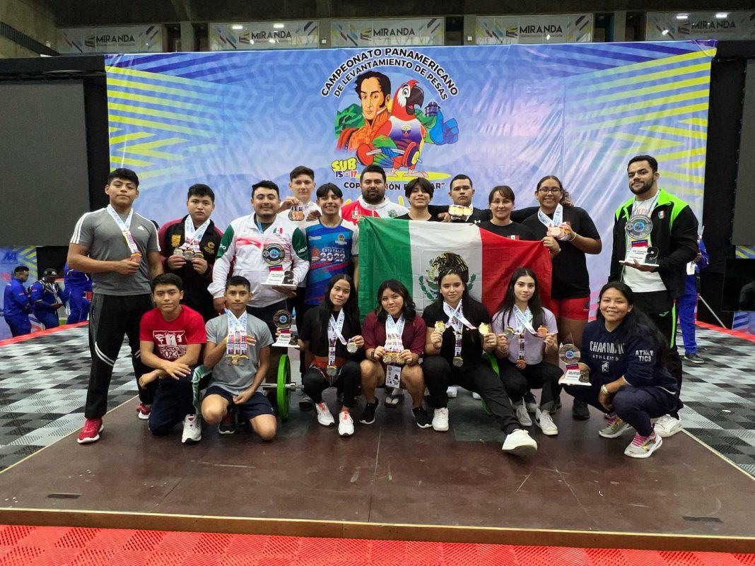 El pesista chiapaneco vistiendo los colores de México en el sector de los 102 kilogramos de la Sub-15 varonil, se adjudica el primer lugar en la modalidad de Arranque, Envión y Total