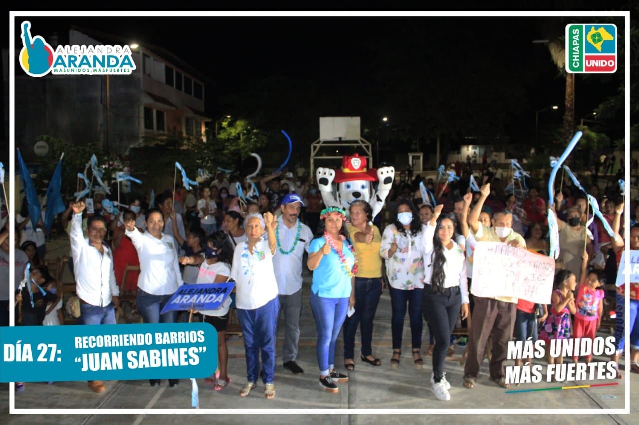 Cintalapa de Figueroa, Chiapas. Dando continuidad a la promoción de sus propuestas políticas para el fortalecimiento de los sectores y la estabilidad social, la candidata del partido Chiapas Unido Alejandra Aranda Nieto, recorrió diferentes Barrios de la cabecera municipal.