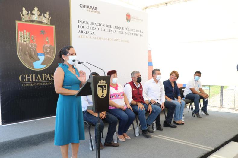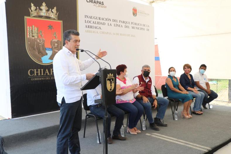 En el municipio de Arriaga, el gobernador Rutilio Escandón Cadenas inauguró la construcción integral del Parque La Línea, donde subrayó que, gracias al trabajo responsable, honesto y leal, los recursos públicos alcanzan para impulsar este tipo de obras prioritarias y con alto sentido social, que contribuyen al mejoramiento de la imagen urbana, la seguridad y la paz de la localidad, así como al fortalecimiento del bienestar y la convivencia fraternal de las y los habitantes.