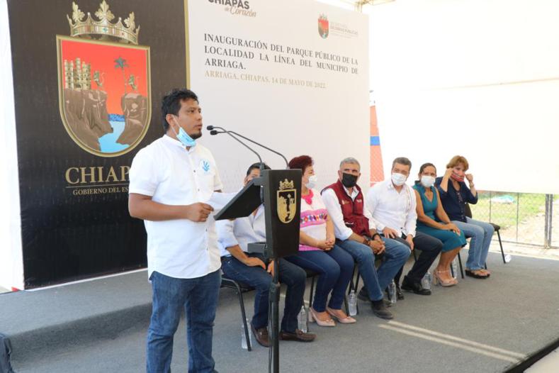 En representación de las y los beneficiarios, Luis Arbey Cruz Pérez, dijo que para que haya resultados debe haber no solo ciudadanos organizados y comprometidos, sino también gobiernos que escuchen la voz del pueblo y que conviertan las necesidades en realidades, por lo que agradeció al gobernador por su trabajo en beneficio de la niñez de Arriaga, pues al inaugurar este Parque Público de la localidad de La Línea, les devuelve la sonrisa y les da esperanza de un mejor futuro.