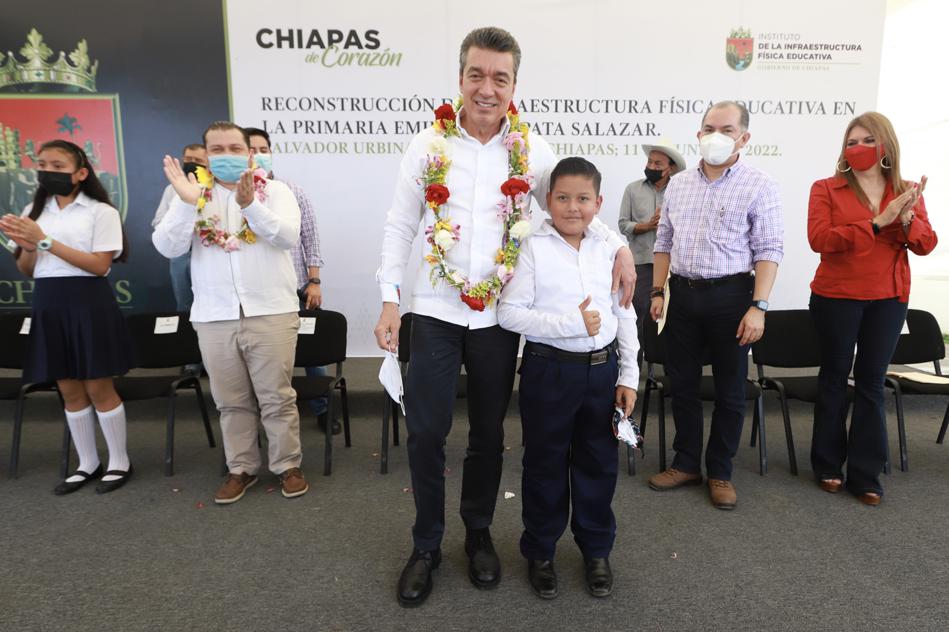 En Cacahoatán, el gobernador Rutilio Escandón Cadenas inauguró aulas didácticas, obras de exterior y entregó equipamiento a la Escuela Primaria “Emiliano Zapata Salazar” de la localidad Salvador Urbina, donde destacó que su gobierno trabaja con responsabilidad, honestidad y lealtad al pueblo, por eso los recursos públicos alcanzan para atender las necesidades más sensibles en materia educativa y avanzar en la edificación de más espacios escolares, en beneficio de la comunidad escolar.