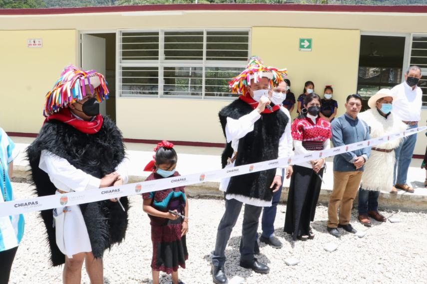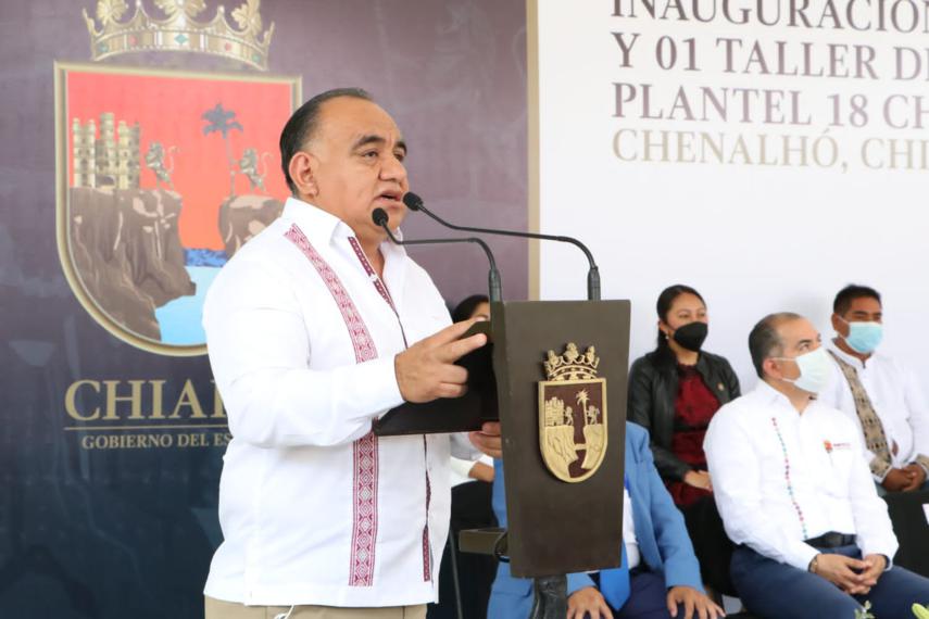 Al inaugurar espacios en la Primaria “Dr. Belisario Domínguez Palencia” y el Colegio de Estudios Científicos y Tecnológicos No. 18 (Cecyte Chiapas), señaló que las niñas, niños y jóvenes son el presente y futuro, por lo que es primordial que tengan herramientas e infraestructura digna, segura y funcional para su formación. Por ello, aseguró que en ambos planteles continuarán las obras que fortalezcan el proceso de enseñanza-aprendizaje.