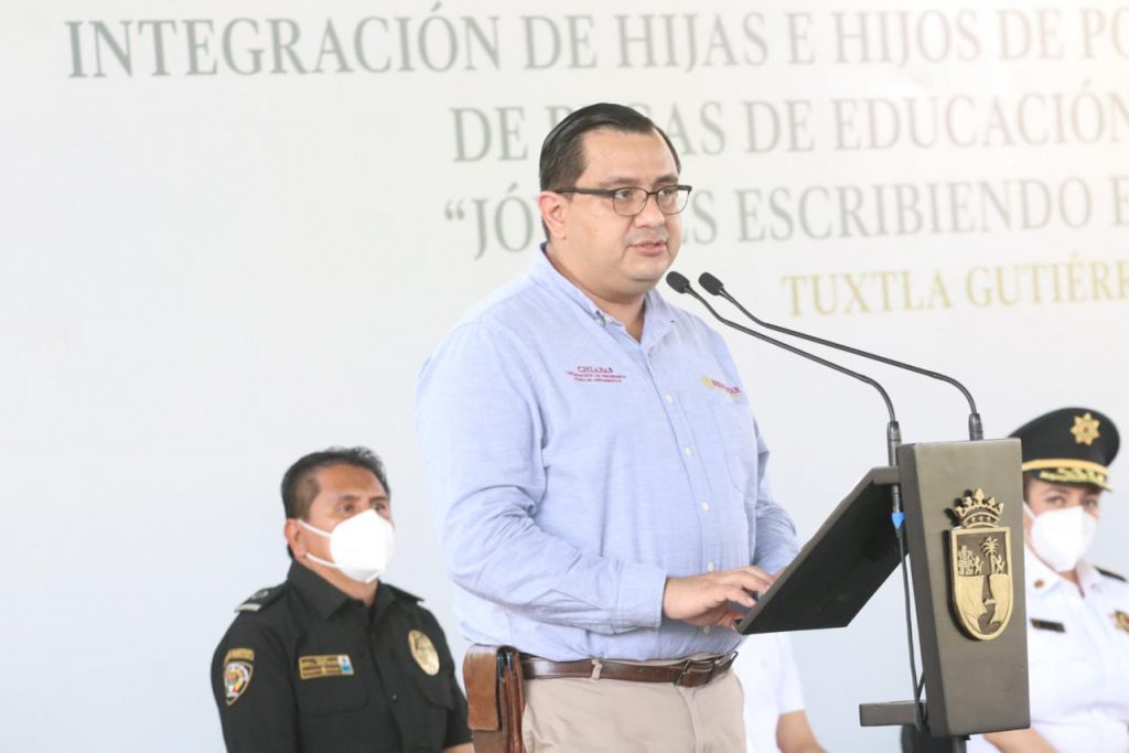 Tras reconocer el gran apoyo que esta corporación aporta en la dispersión de los distintos programas sociales en la entidad, el delegado estatal de Programas Integrales de Desarrollo en Chiapas, José Antonio Aguilar Castillejos, informó que se benefició a 129 jóvenes, hijas e hijos del sector policial, a fin de que puedan continuar con sus estudios universitarios.