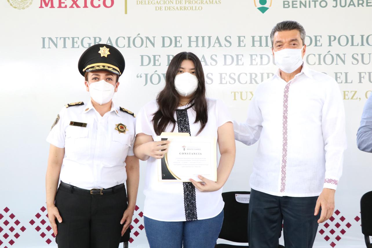 “Las y los policías son grandes servidores públicos porque son quienes cuidan el orden y la seguridad de nuestra querida entidad, y que en muchas ocasiones arriesgan su vida para salvar la de los demás, por eso esta beca dirigida a sus hijas e hijos es merecida”, apuntó al precisar que, en esta primera etapa, se apoya a 129 jóvenes, sin embargo, la meta es aumentar, de manera gradual, el número de becarios.