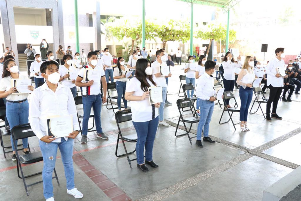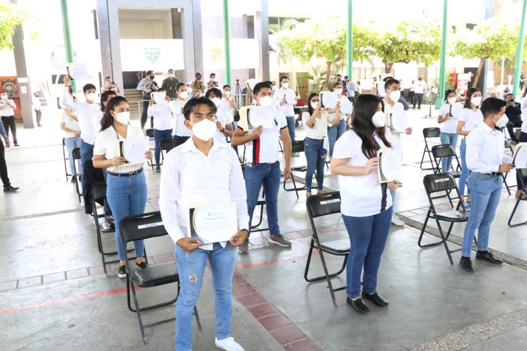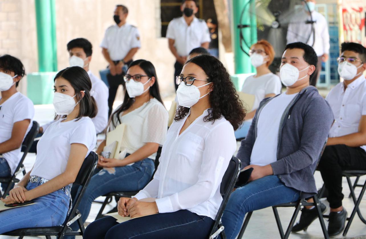 En nombre de las y los becarios, José del Carmen Méndez Gutiérrez expresó el orgullo que sienten por el trabajo, sacrificio y aportación que sus padres y madres hacen como policías, a favor de la seguridad de la entidad, por lo que este apoyo “será utilizado de manera responsable en el desarrollo de nuestros estudios”.