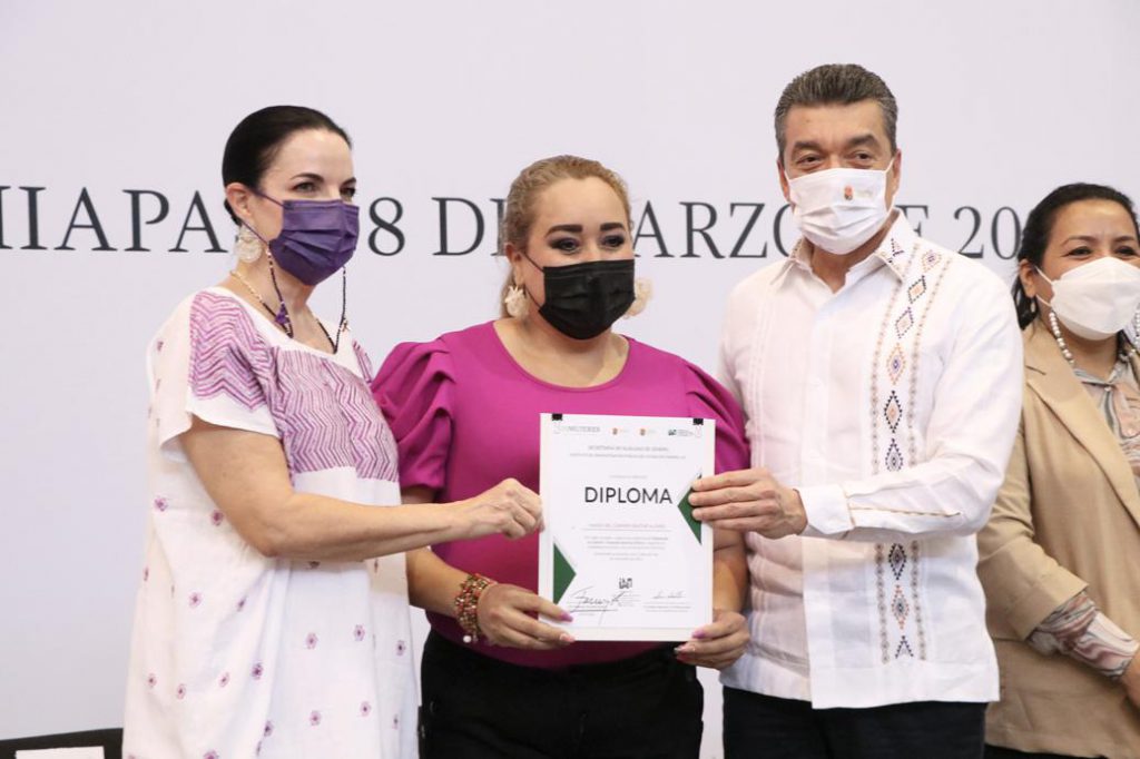 Reconoció que, aunque aún hay mucho qué hacer, en Chiapas se avanza para que no haya simulación y se trabaja a favor de las mujeres, a fin de que sumen su capacidad y talento al esfuerzo de sacar adelante a la entidad, y que las niñas y mujeres puedan vivir en entornos libres de violencia.