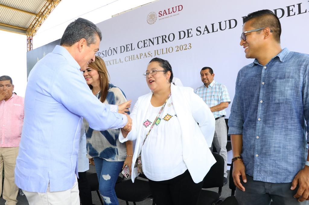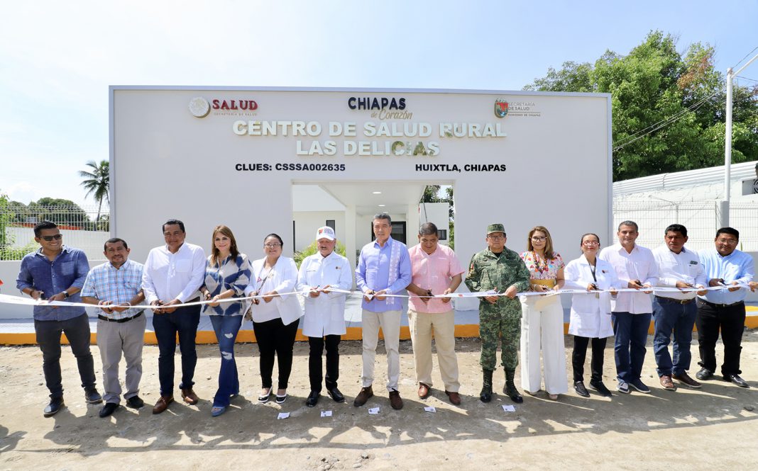 En el municipio de Huixtla, el gobernador Rutilio Escandón Cadenas inauguró la reconversión del Centro de Salud Rural de la colonia Las Delicias, donde destacó que en materia de salud Chiapas ha pasado del abandono a la transformación de los servicios médicos, desde infraestructura, medicamentos, personal médico y equipamiento, esto con el propósito de garantizar una atención digna y oportuna, con calidad y calidez.
