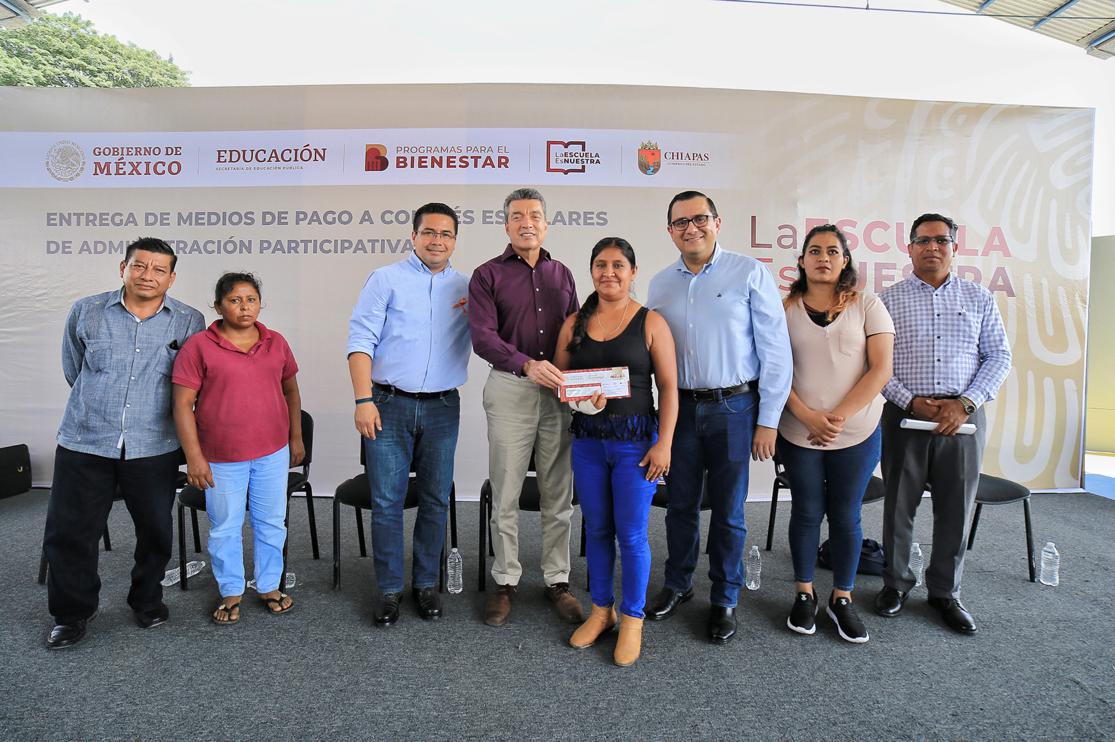 En Ocozocoautla, Rutilio Escandón entregó medios de pago del programa La Escuela es Nuestra