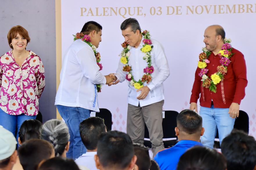 En Palenque, inaugura Rutilio Escandón construcción del tramo carretero Roberto Barrios-Arimatea