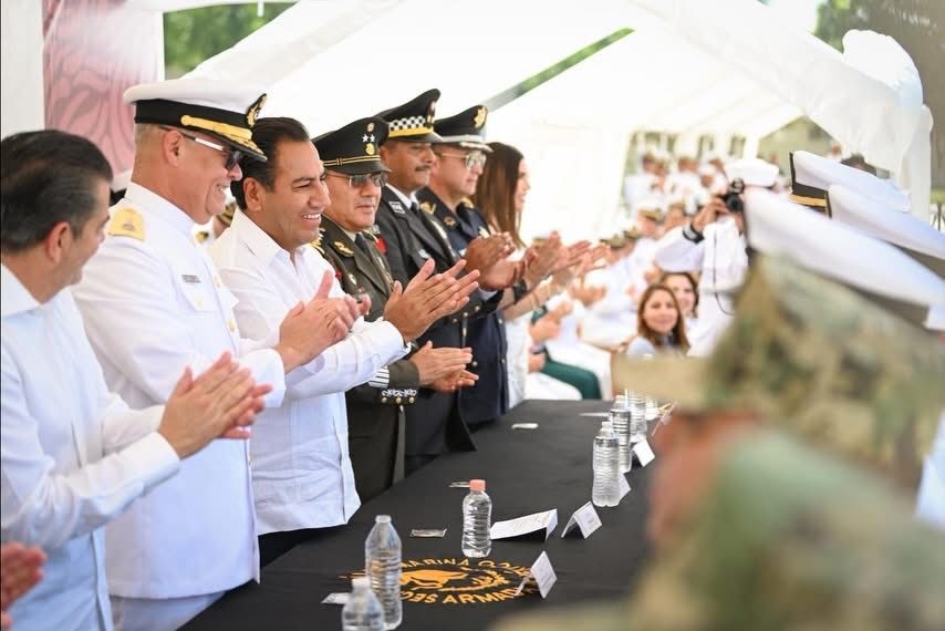 Al agradecer la invitación del comandante de la Vigésima Segunda Zona Naval, vicealmirante Martín Felipe de Jesús Santillán Murillo, el mandatario reconoció la lealtad, el patriotismo y el profundo compromiso que las Fuerzas Armadas mantienen con la defensa de la soberanía nacional.