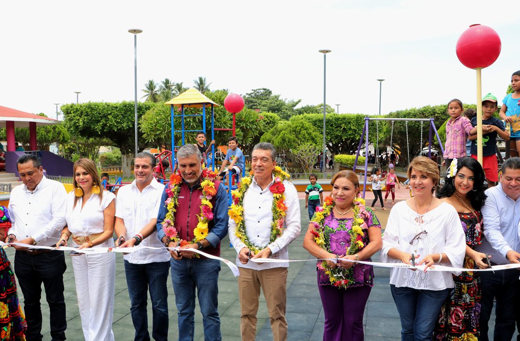 “Este parque estaba en malas condiciones y no había recibido mantenimiento, por eso asumimos el compromiso de mejorarlo integralmente, y hoy entregamos un parque muy bonito, digno y moderno, con áreas verdes, juegos infantiles, cancha de básquetbol, espacios de recreación y para ejercitarse. Esto y más merece Suchiate porque es un pueblo bueno, solidario y trabajador, que en todo momento privilegia el bien común”, apuntó.