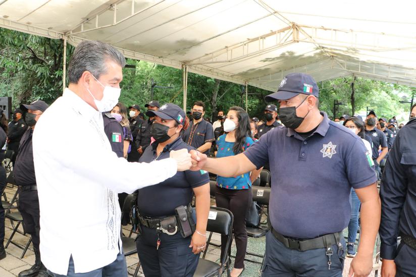 Durante la entrega de vehículos al Centro Estatal de Control de Confianza Certificado, así como de Certificados Únicos Policiales (CUP) a elementos de seguridad pública de diferentes municipios de Chiapas, el gobernador Rutilio Escandón Cadenas destacó que su gobierno invierte en este rubro, con el objetivo de contar con corporaciones policiales equipadas, preparadas y profesionales para cuidar a la población, con base en el respeto a los derechos humanos y con perspectiva de género.