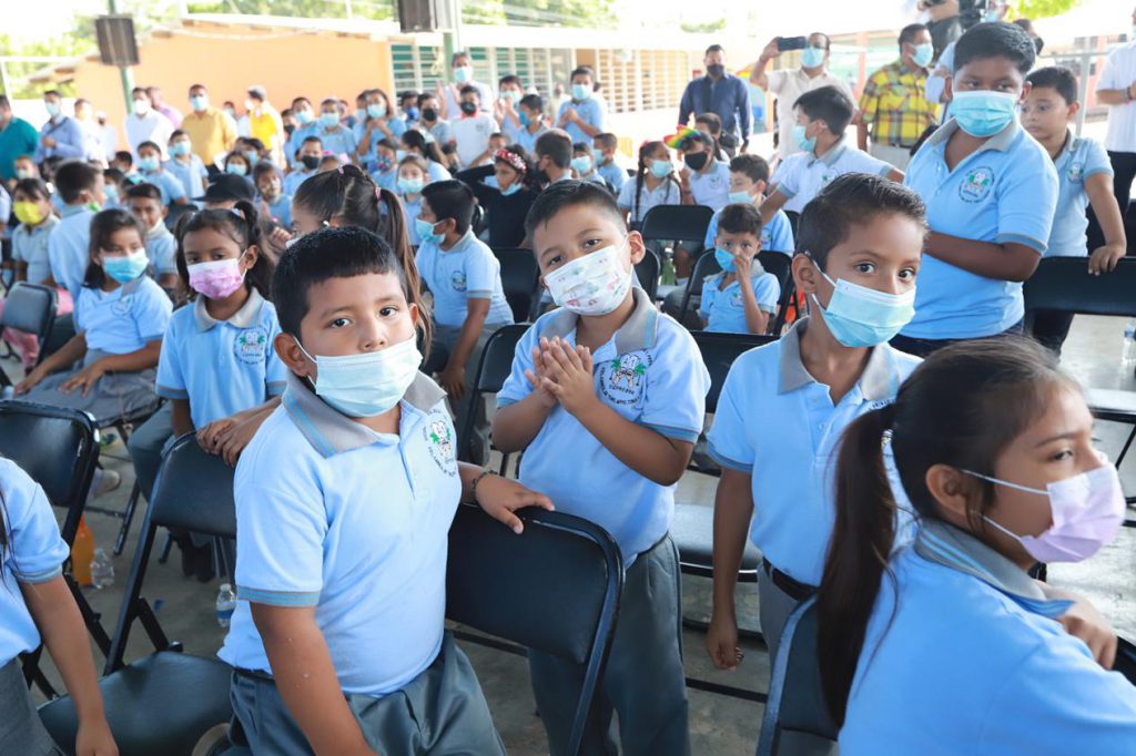 Por su parte, la secretaria de Educación, Rosa Aidé Domínguez Ochoa, celebró que en esta zona se registrara el 100 por ciento de escuelas abiertas y un 60 por ciento retornaran a actividades presenciales, por lo que reconoció el compromiso de docentes, madres y padres de familia para que la niñez y juventud hagan uso del derecho a la educación. Asimismo, señaló que seguirán dotando de paquetes de limpieza con la finalidad de proteger la integridad del alumnado.