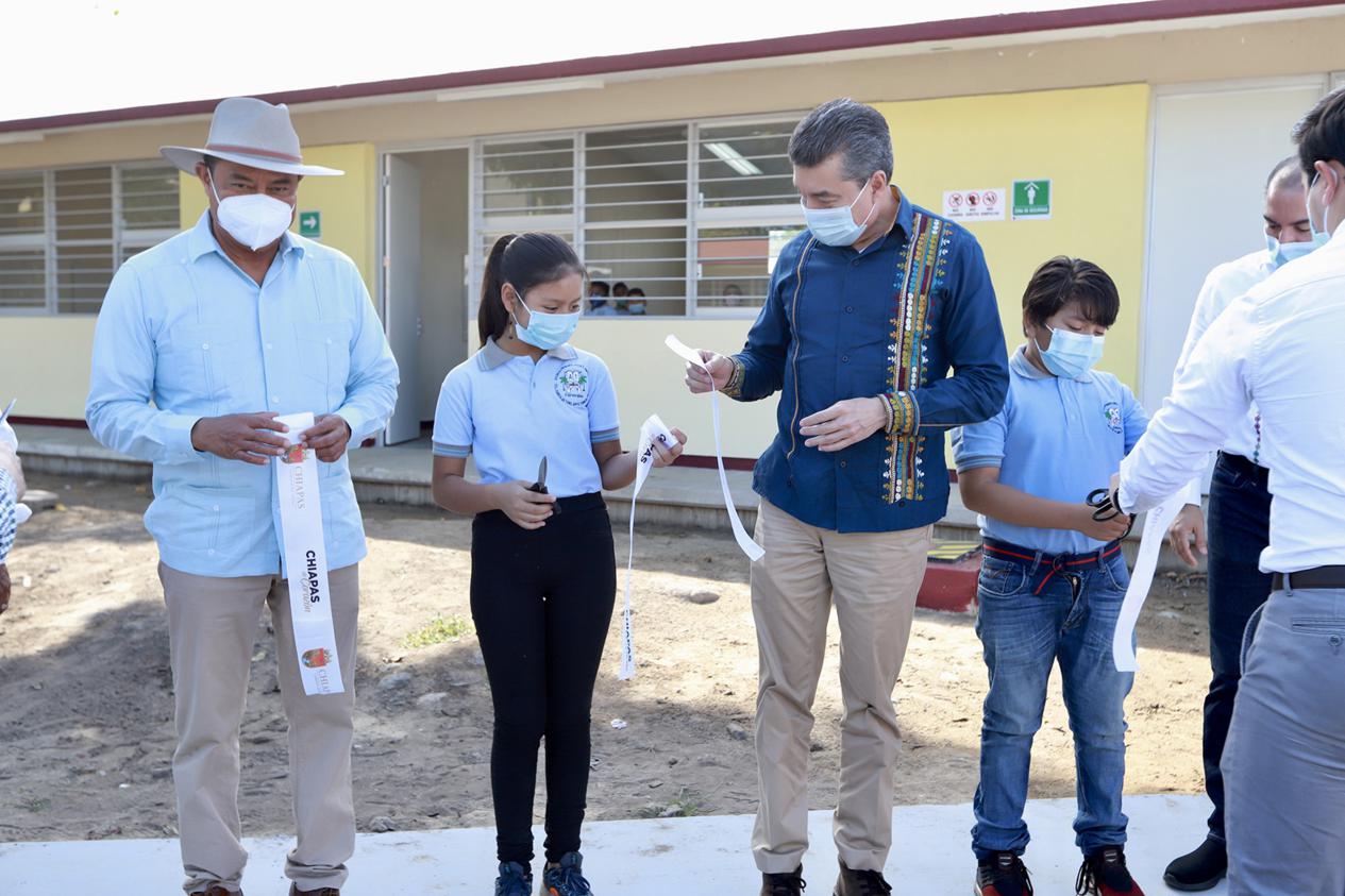 A su vez, el director general del Instituto de Infraestructura Física Educativa de Chiapas (Inifech), Enoc Gordillo Argüello, dio a conocer que la rehabilitación de seis aulas didácticas y módulos sanitarios de este plantel, que se realizó en dos etapas con un monto de inversión de 3.09 millones de pesos, es parte de las acciones que se ejecutan en esta zona, donde se invierten más de 30 millones de pesos.