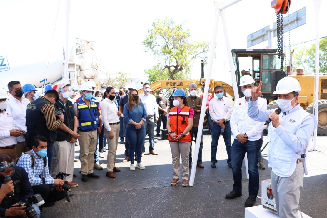 Al encabezar la colocación de la primera piedra que da inicio a la construcción del paso a desnivel vehicular sobre el Libramiento Sur y 11 Poniente de Tuxtla Gutiérrez, el gobernador Rutilio Escandón Cadenas resaltó que esta obra integral es trascendental para mejorar la movilidad y conectividad dentro de la capital chiapaneca, así como con otros municipios o estados del país.