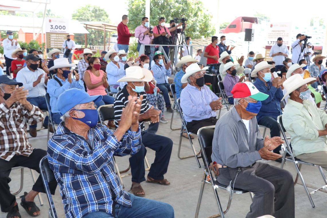 Estuvieron presentes: la productora de la localidad Galecio Narcía, Ustreberta García José; los agentes y comisariados ejidales de Rivera Paraíso, Nuevo Poblado Concepción, del municipio de Chiapa de Corzo, así como las y los beneficiarios de los municipios de Totolapa, Emiliano Zapata y Acala.