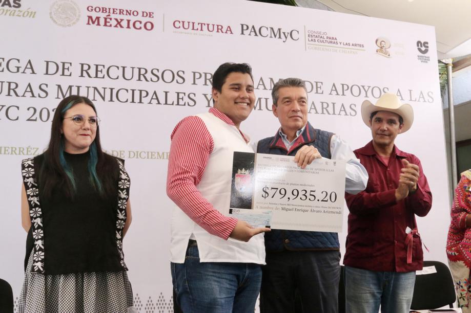 Como parte de la estrategia para contribuir al desarrollo de la diversidad, mediante el financiamiento de proyectos comunitarios que estimulen las actividades artísticas y culturales locales, el gobernador Rutilio Escandón Cadenas encabezó la entrega de recursos dentro del Programa de Apoyo a las Culturas Municipales y Comunitarias (PACMyC) emisión 2023, en el que se favorece a un total de 26 proyectos que promueven el arte y la cultura con sus diferentes expresiones en comunidades indígenas, afromexicanas y mestizas.