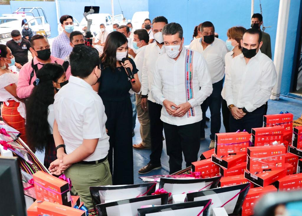 Entrega CEPSVyPC apoyos tecnológicos y socioproductivos a escuelas de Tuxtla Chico