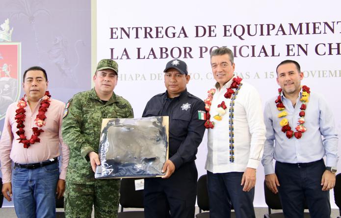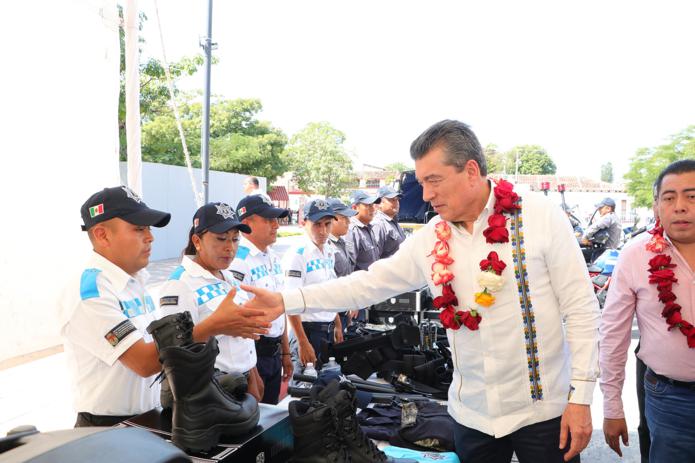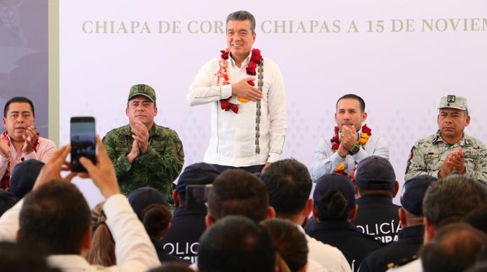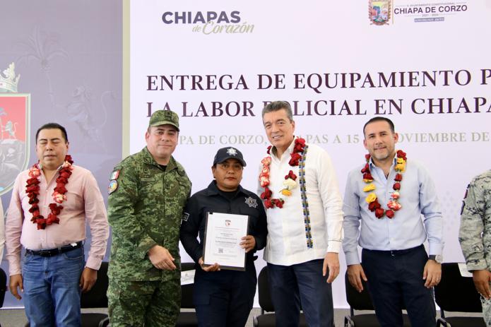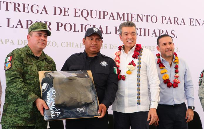 “En Chiapas, estamos trabajando para atender lo más preciado que pide un pueblo, que es su seguridad, pues al garantizarla, se genera más progreso, desarrollo y participación de inversiones para fortalecer la economía de los pueblos. Por eso, seguiremos entregando patrullas, insumos, uniformes, botas tácticas y todo lo que se requiera para atender la seguridad de los habitantes”, enfatizó.