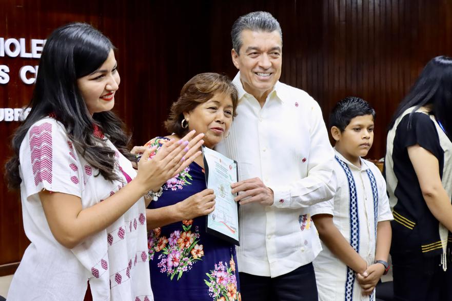 El niño Ángel Antonio Chávez Gordillo, beneficiario del Programa “Escuela Con Valores”, expresó su alegría por el apoyo que recibió, pues, dijo, le ayudará a seguir aprendiendo en la escuela y en su casa: “Gracias por estos apoyos para las niñas y los niños, y también por llevar cursos a más personas como mi mamá, que pudo aprender un oficio; gracias a eso hemos podido convivir más con nuestros vecinos y amigos. Recuerden que entre nosotros debemos cuidarnos, protegernos y escucharnos para tener un Chiapas libre de violencia”.