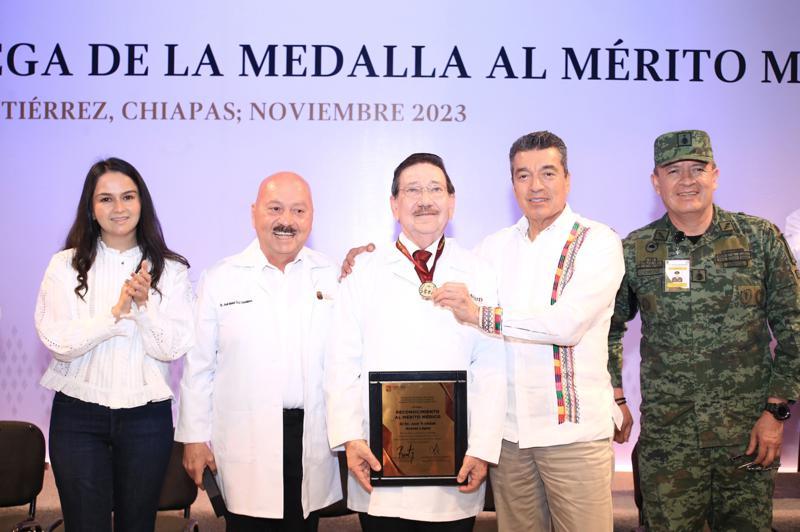 Entrega Rutilio Escandón la Medalla al Mérito Médico Chiapas 2023 al doctor José Trinidad Aceves