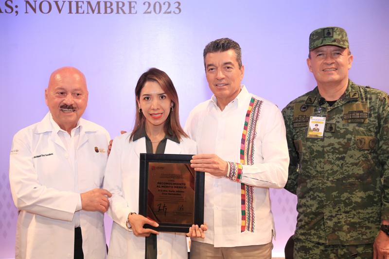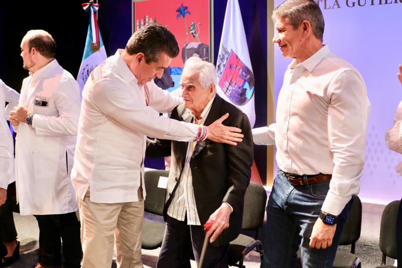 Por su parte, el galardonado José Trinidad Aceves agradeció a su familia y colegas, además de compartir este reconocimiento con su hijo fallecido José Enrique, quien también era médico. De igual forma, resaltó la gran labor de las y los profesionales de la salud, celebró el apoyo que se le brinda a este sector e hizo hincapié en que hoy Chiapas es otro y cuenta con recursos que antes no se tenían, marcando un cambio verdadero en la historia del país.