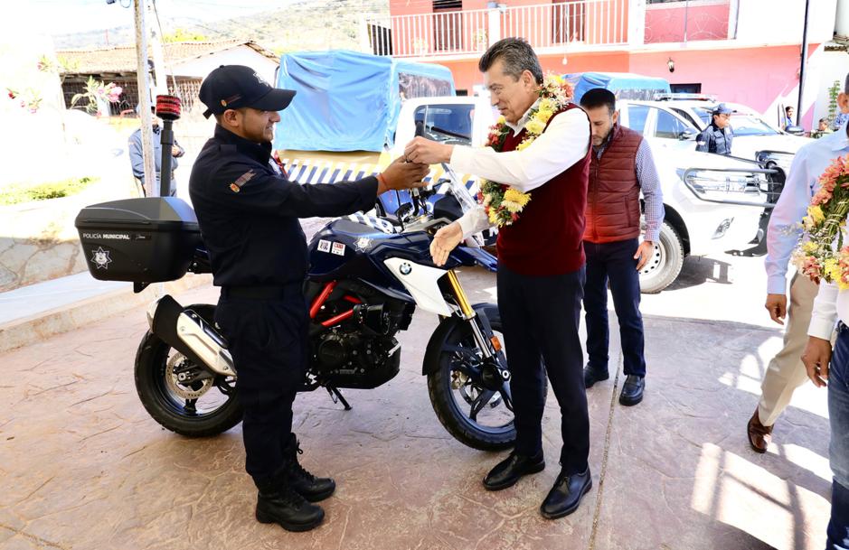 En representación de sus compañeros y compañeras policías, Candelaria Díaz Maldonado, agradeció al mandatario estatal por los apoyos brindados, detallando que su presencia fortalece los vínculos de amistad y respeto entre los municipios hermanos. Resaltó que el equipamiento es de suma importancia para dignificar el cumplimiento del servicio, ya que brinda las herramientas necesarias para continuar bajando el índice delictivo y garantizar la tranquilidad y la paz social.