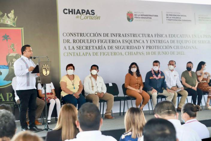 Cintalapa.- En un acto trascendental para el desarrollo del municipio de Cintalapa en el tema educativo, el Presidente Municipal Ernesto Cruz Díaz; acompañó al Gobernador Rutilio Escandón Cadenas al acto protocolario de la “Construcción de Infraestructura Física Educativa”.