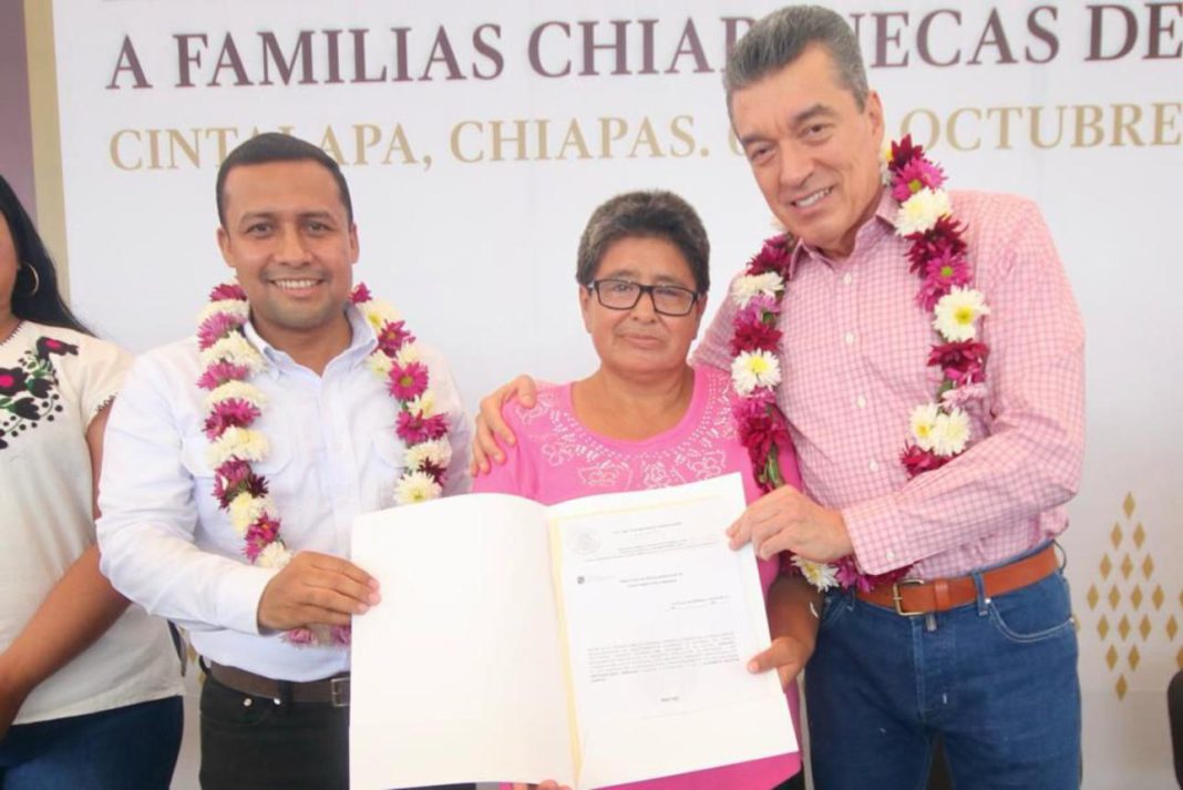 “Hoy es un día especial para Cintalapa y para los demás municipios beneficiados, es un momento de gran significado y trascendencia en la vida de muchas familias, ya que ha entregado 450 Escrituras Públicas y Certificados de Lotes a Familias Chiapanecas de diversos Municipios”.