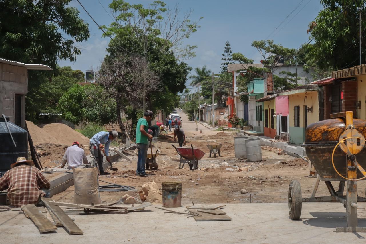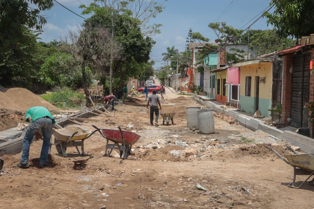Mientras que sobre la 1a Sur entre 5a y 6a Oriente del barrio de Santa Cecilia, aún se está realizando la construcción de pavimentación de concreto hidráulico para habilitar la vialidad a transeúntes y automóviles.