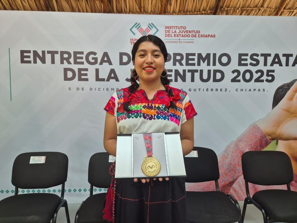 Tuxtla Gutiérrez, Chiapas. – Esmeralda Guadalupe Pérez Chulín, estudiante del Colegio de Estudios Científicos y Tecnológicos del Estado de Chiapas (Cecytech), Plantel número 21 del municipio de Bochil, obtuvo el Premio Estatal de la Juventud 2025 en la Categoría de Expresiones Artísticas y Artes Populares, tras ser reconocida por su cuento “El viaje de Rulo”, distinción que reafirma el talento creativo y académico de la juventud chiapaneca.