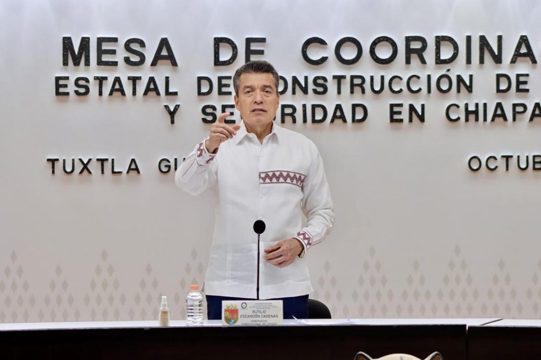 Durante la Mesa de Coordinación Estatal para la Construcción de la Paz y la Seguridad, el gobernador Rutilio Escandón Cadenas subrayó que, aunque la temporada de ciclones y huracanes está por concluir, las lluvias van a continuar en gran parte del territorio estatal, por lo que reiteró el llamado a la población a cuidarse y seguir con las medidas preventivas, a fin de evitar situaciones de riesgo.
