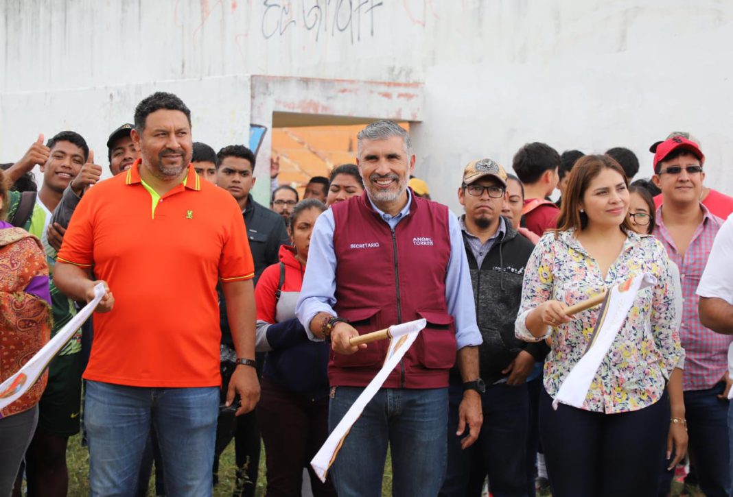 Ángel Torres, secretario de Obras Públicas del Estado, acompañado del alcalde César Hugo Lázaro Rodríguez, así como de deportistas y habitantes, puso en marcha la construcción de lo que será un nuevo polideportivo que beneficiará a las familias de la cabecera municipal de Jiquipilas y de comunidades aledañas.