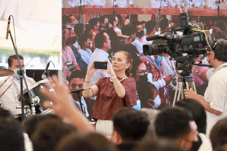 La consejera de la Memoria Histórica y Cultural de México, Beatriz Gutiérrez Müller, invitó a la niñez y juventud a escribir las ideas que la imaginación les genere a través de un cuento. “Pueden hacer lo que sea sobre la hoja para que sus ideas y sentimientos salgan porque la escritura permite sacar lo que tenemos dentro: la alegría, tristeza, frustración, sueños, fantasías; dejen crecer su imaginación, mucha de ella surge a partir de la lectura constante de libros, que no causan daño, son amigos de todas y todos”.
