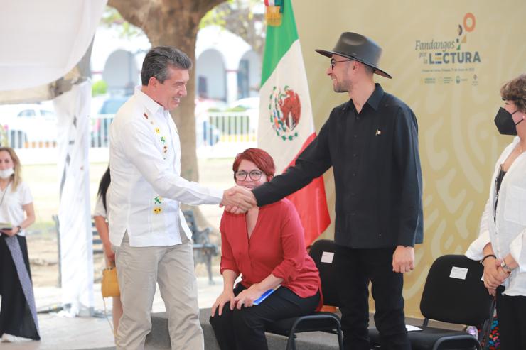 Desde el municipio de Chiapa de Corzo, y en el marco de la Estrategia Nacional de Lectura, el gobernador Rutilio Escandón Cadenas y la presidenta del Consejo Honorario de la Coordinación Nacional de Memoria Histórica y Cultural de México, Beatriz Gutiérrez Müller, encabezaron el arranque de la jornada Fandangos por la Lectura, en la que se promueve el acercamiento de infancias y juventudes a la lectura, con el objetivo de incentivar sus posibilidades creadoras y de expresión artística, a través de la palabra oral y escrita.