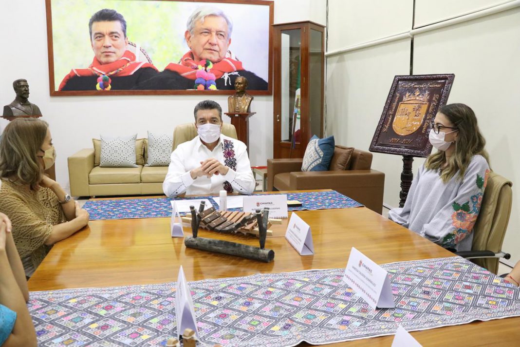 El gobernador Rutilio Escandón Cadenas se reunió con la directora de Fundación Coppel y Responsabilidad Social de Grupo Coppel, Rocío Abud Mirabent, y la presidenta de la Fundación MGAS, Mari Rouss Villegas Balmori, con la finalidad de afianzar alianzas y acciones, principalmente, a favor de las niñas y niños de Chiapas.