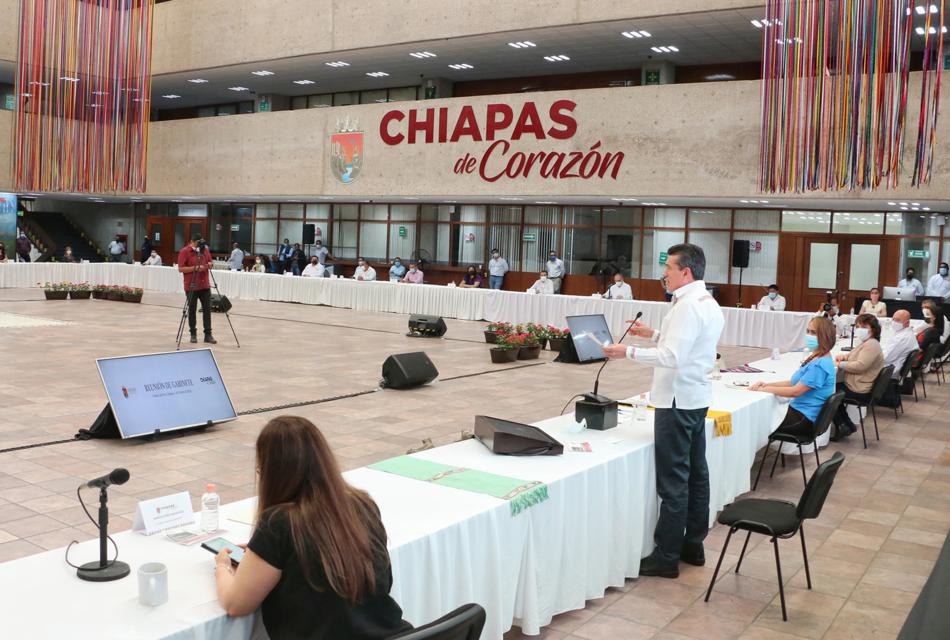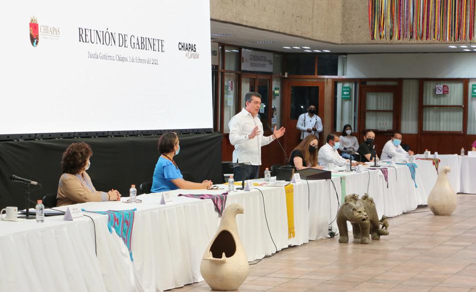 Al encabezar la reunión con el Gabinete Legal y Ampliado, el gobernador Rutilio Escandón Cadenas convocó a continuar con un desempeño transparente, ya que, debido al trabajo honesto, en 2020 se generaron economías que permitieron realizar grandes inversiones para enfrentar la pandemia, brindar ayuda humanitaria y avanzar en la rehabilitación de viviendas, carreteras y caminos, que resultaron con afectaciones por los frentes fríos y tormentas tropicales.
