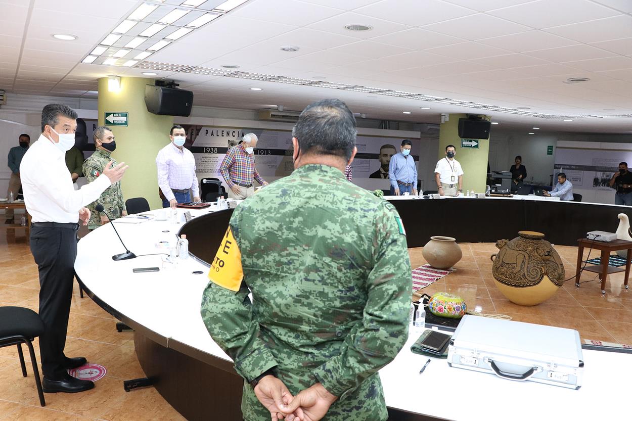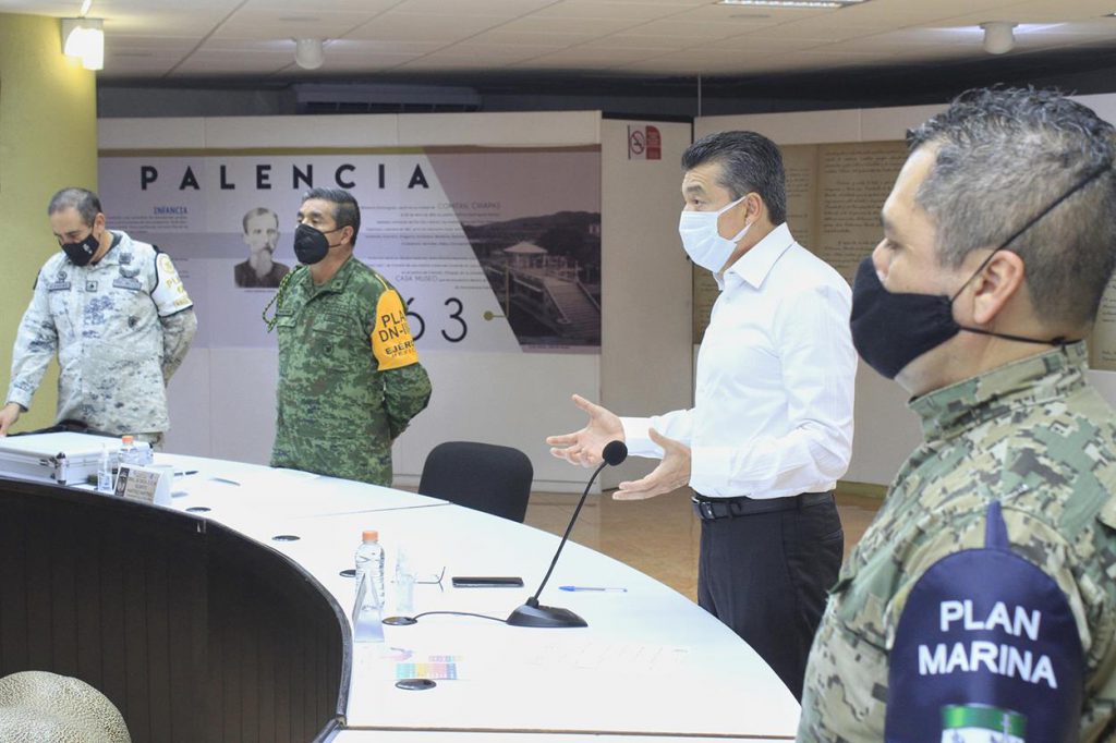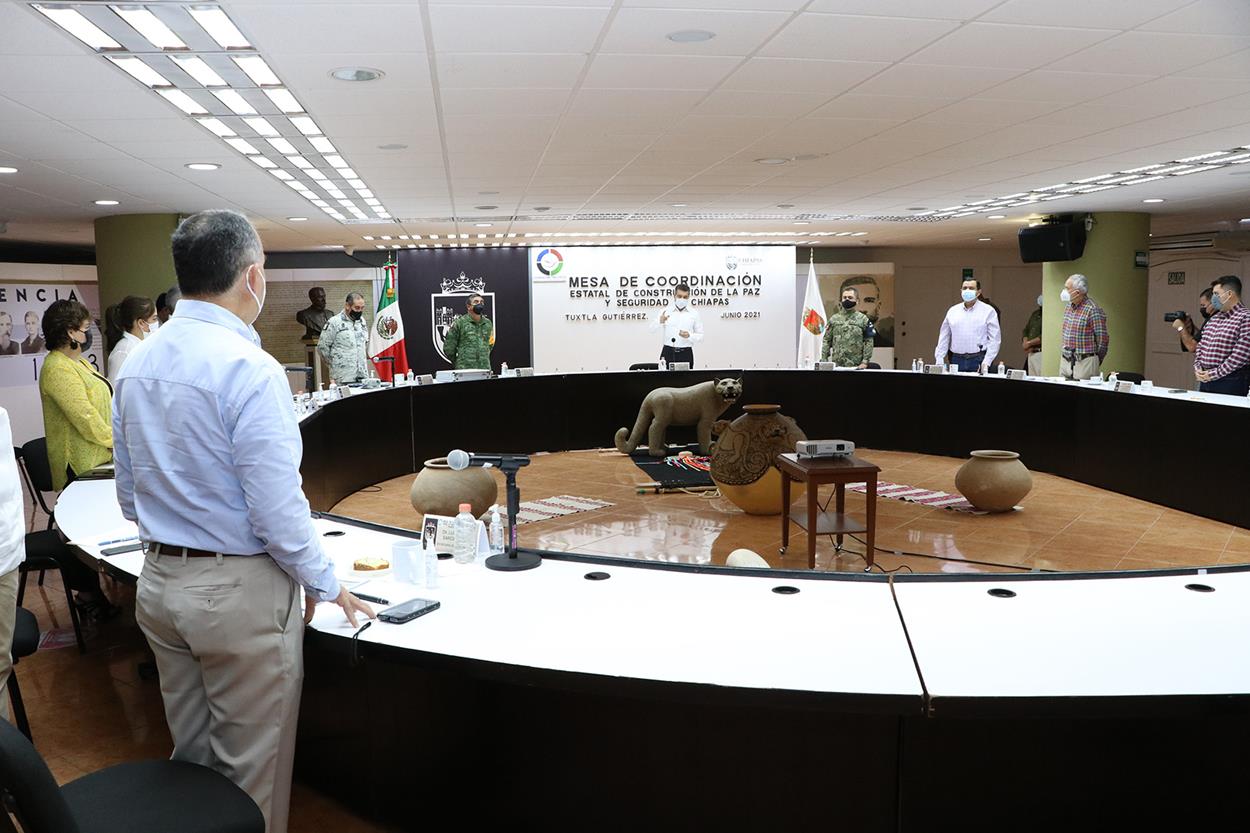 En el marco de la Mesa de Seguridad, el gobernador Rutilio Escandón Cadenas resaltó que gracias al respaldo de la Federación, siguen arribando más vacunas para proteger la salud de las y los chiapanecos, sin distinción alguna, sin embargo, dijo, es de suma importancia continuar aplicando las medidas de autocuidado, higiene y distanciamiento social, así como el uso de cubrebocas y gel antibacterial, en los hogares y espacios públicos.