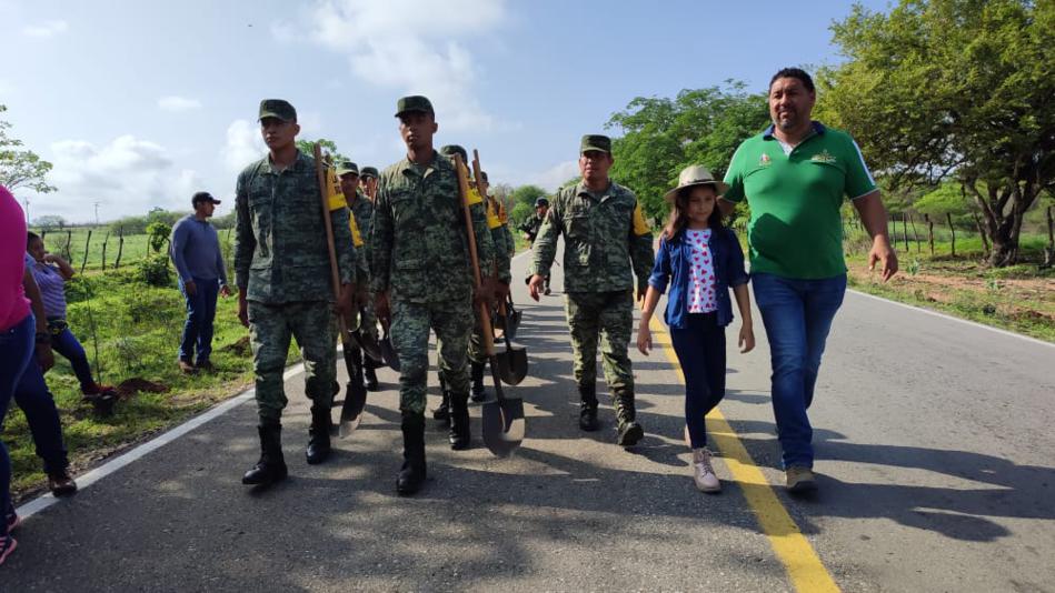 Jiquipilas, Chiapas. – El alcalde César Hugo Lázaro Rodríguez encabezó junto a personal del Ayuntamiento municipal e integrantes del 100 batallón de infantería, adscrito a Chiapas Nuevo, la reforestación y embellecimiento del acceso al municipio.