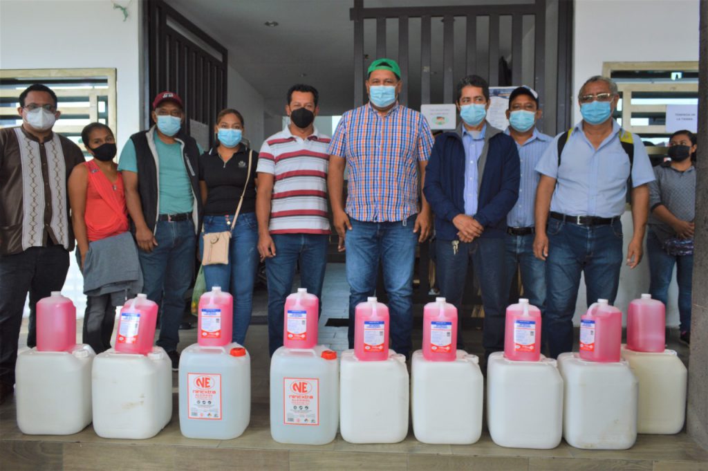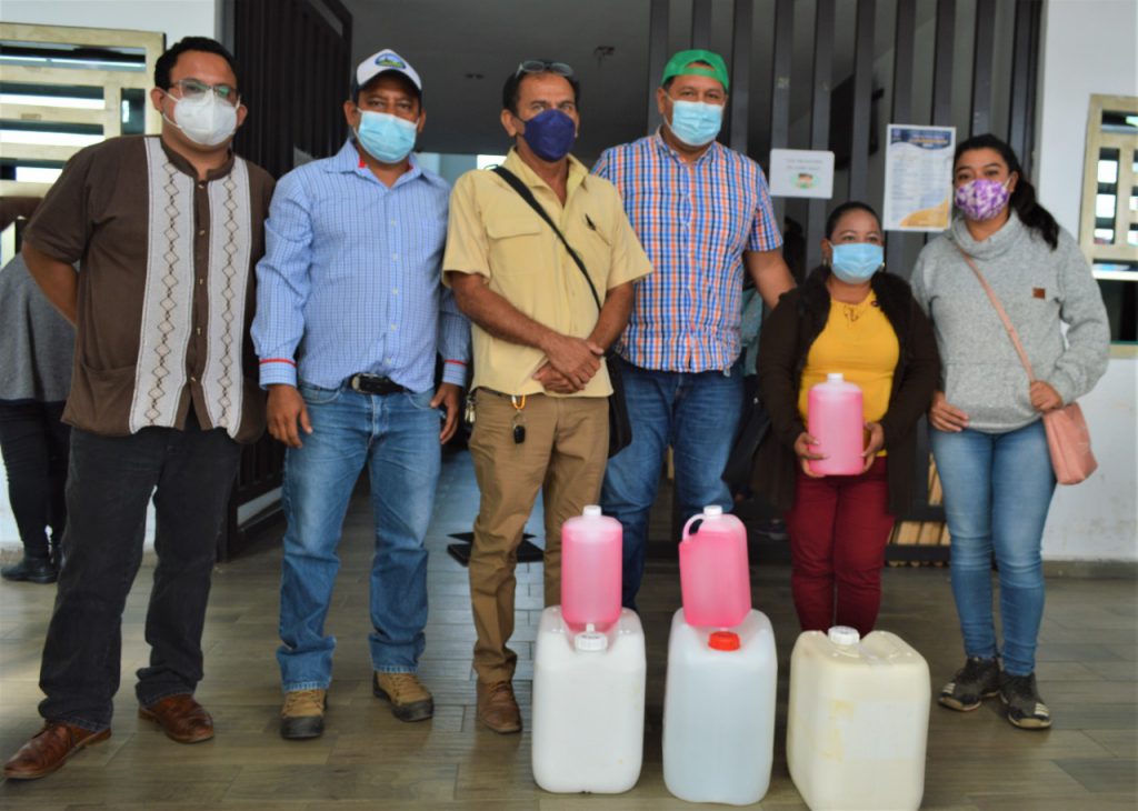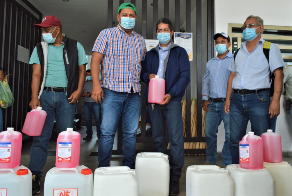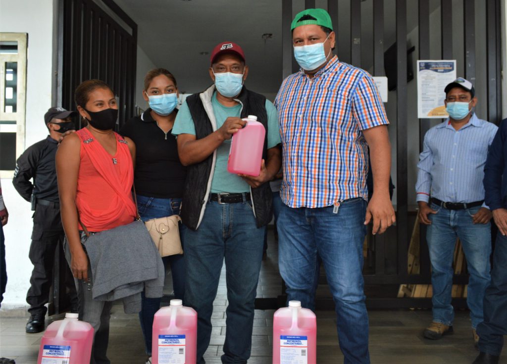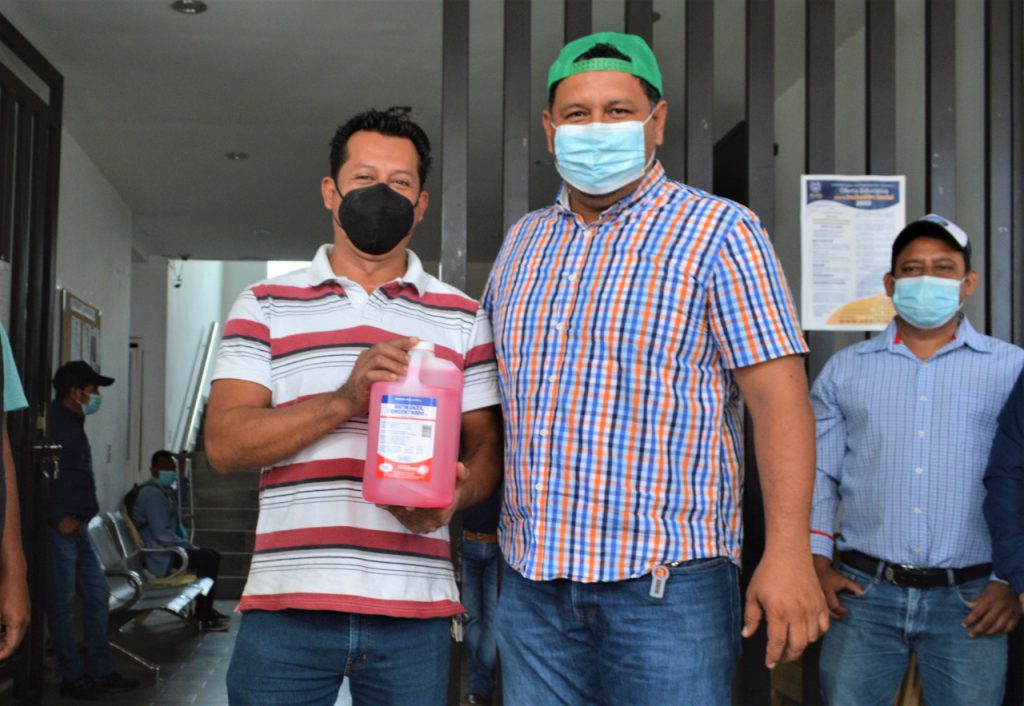 Jiquipilas, Chiapas.- Reforzando medidas sanitarias para contribuir a la disminución de contagios por el covid-19 y constatar de instalaciones libres de fuentes de contagios, el Alcalde César Hugo Lázaro Rodríguez entregó insumos preventivos como gel antibacterial y sanitizantes.