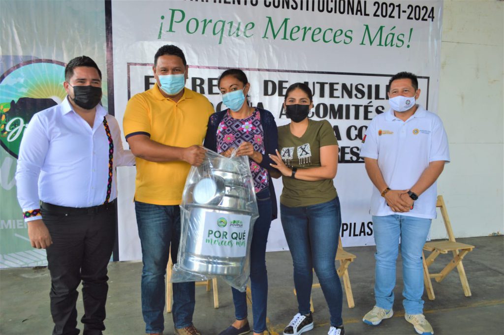 Acompañado de Madely Montejo, Presidenta del Dif Jiquipilas; Luis Hiram Mancilla, Delegado regional del Dif y Guillermo Soto Palomeque, delegado de Protección Civil, se efectuó este acto que da gran beneficio a las instituciones, equipando con utensilios donde elaboran alimentación saludable para la niñez.
