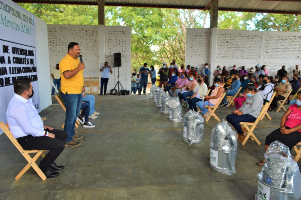 Jiquipilas, Chiapas.- Reforzando el proyecto “Barriguita llena, corazón contento” el alcalde César Hugo Lázaro Rodríguez entregó utensilios de cocina a comités de diferentes instituciones educativas beneficiadas.