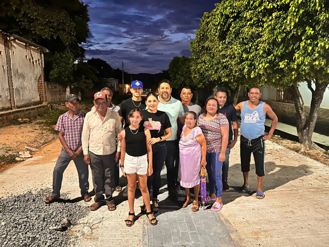 Jiquipilas, Chiapas. – El Presidente Municipal César Hugo Lázaro Rodríguez acompañado de su familia y autoridades ejidales supervisó el avance de la obra de pavimentación de calle en el ejido Sinaloa constatando que el avance se desarrolla en tiempo y forma.