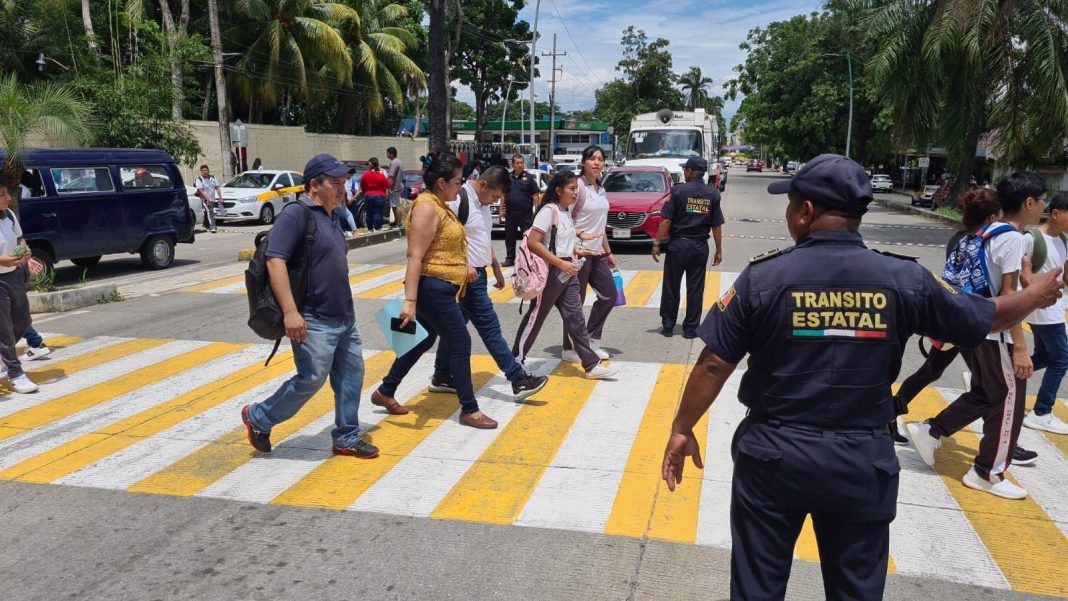 Tuxtla Gutiérrez, Chiapas.- Por acuerdo de la Mesa de Seguridad Estatal que todos los días encabeza el gobernador Rutilio Escandón Cadenas, la Secretaría de Seguridad y Protección Ciudadana del Estado (SSyPC) implementó el Operativo “Regreso a Clases 2023” en todo el estado, con el objetivo de garantizar la seguridad de la población y estudiantes, privilegiando las medidas de seguridad vial al exterior de las instituciones educativas.