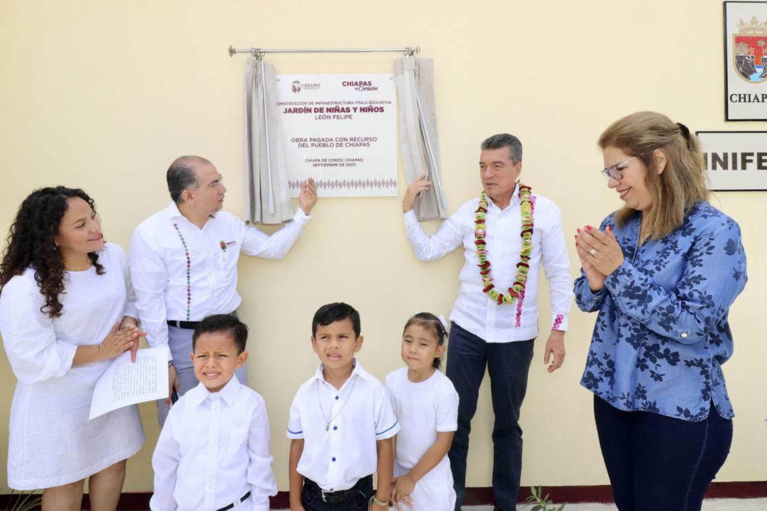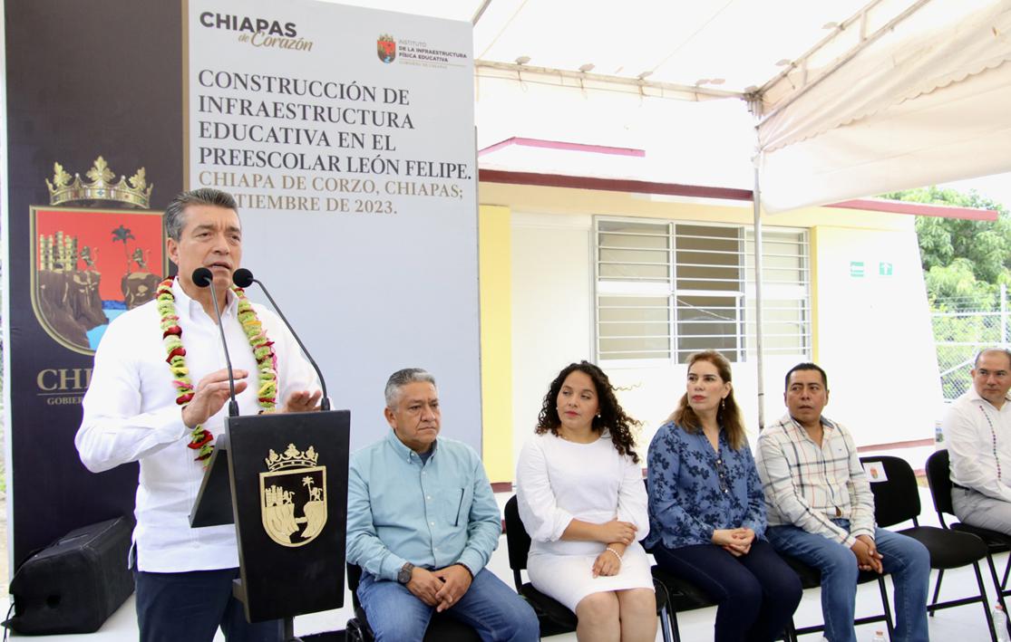 En Chiapa de Corzo, el gobernador Rutilio Escandón Cadenas inauguró la construcción del Jardín de Niñas y Niños “León Felipe”, donde destacó que el Gobierno de la Cuarta Transformación ha asumido el compromiso de invertir en materia educativa, con el objetivo de garantizar a la niñez y juventud de Chiapas una educación digna y de calidad, a través de espacios escolares seguros, modernos y funcionales.