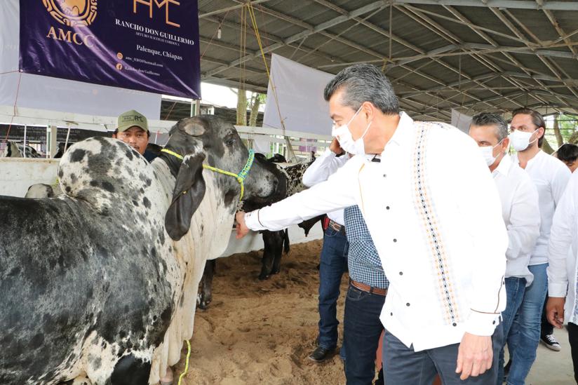 “La ganadería en Chiapas es un pilar fundamental, porque tiene una gran producción de doble propósito, de leche y carne, y es un importante generador de empleo. Por eso, gracias al respaldo y apoyo del presidente Andrés Manuel López Obrador estamos haciendo justicia social y distribuyendo los apoyos, herramientas e insumos necesarios para fortalecer la productividad y el potencial de este sector, a fin de procurar que la comercialización del hato se dé con alta calidad genética”, apuntó.