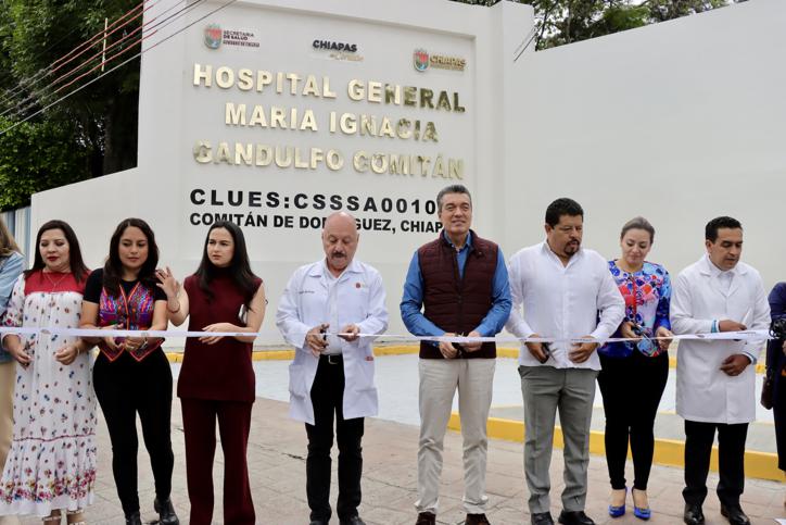 Con el propósito de fortalecer los estándares óptimos de atención y aumentar la capacidad resolutiva en materia de salud, el gobernador Rutilio Escandón Cadenas inauguró la reconversión del Hospital General “María Ignacia Gandulfo”, en el municipio de Comitán de Domínguez, donde subrayó que, gracias al impulso de este tipo de acciones, en Chiapas se cuida bien la salud de la gente, a través de una infraestructura digna, medicamentos suficientes y personal médico especializado.